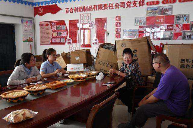 为进一步了解陈巴尔虎旗对于电子商务发展所采取的一系列助农兴农措施,体会内蒙古自治区培育“专精特新”民族传统奶制品示范基地的具体实施情况,实践队员走进陈巴尔虎旗百合利奶制品责任有限公司,参观奶制品制作的生产基地,了解公司销售和产品运输的一系列流程,感受内蒙古民族传统奶制品发展的良好环境。在与公司负责人布日其其格交流的过程中,实践队员了解到关于公司特色产品、电商销售运作、乡村振兴人才培育的基本情况。布日其其格介绍道,公司通过提升生产理念、改善生产条件、提高生产技术和市场竞争力、增强致富能力,带动更多的牧民在科学、精细、高效的生产劳动中实现共同致富。实践队员通过咨询企业创新实施方法和电商发展路径,认识到公司通过“商会+公司+合作社+牧户”的模式,带领贫困牧民走产业化、标准化、规模化、科学化的现代农牧业之路,示范引领更多牧民发展现代高效农牧业。实践队员感受到布日其其格作为传统奶制品带头人为陈巴尔虎旗的电商发展作出的突出贡献,对当地电商营销情况有了进一步的认识,持续为电商发展注入新鲜血液和青春活力。