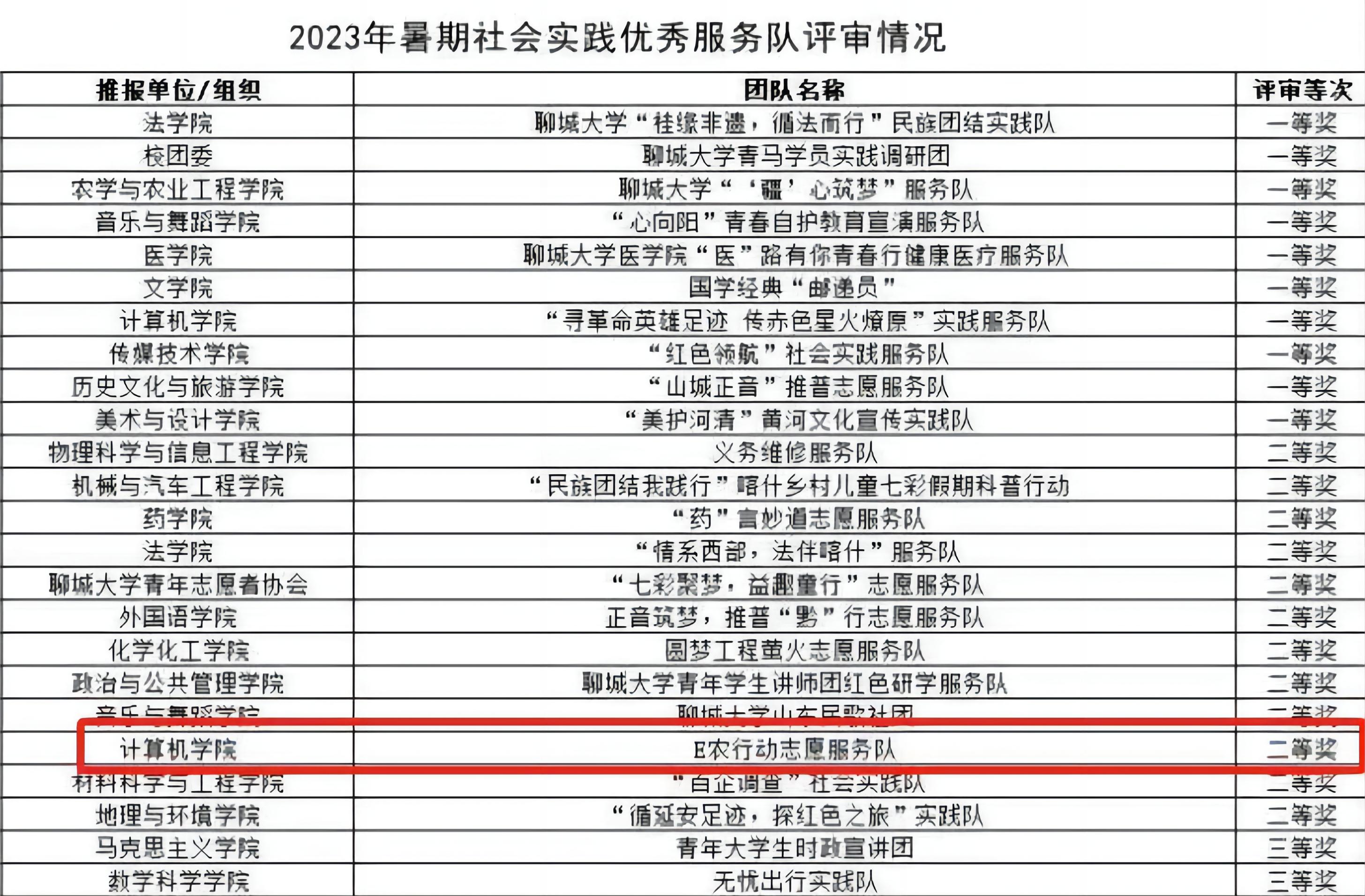 在2023年暑期社会实践中,社团成员结合当前电商发展形式,组建“E农行动”电商助农助力乡村振兴服务队,并入选2023年全国大学生“乡村振兴”志愿服务团队,获评聊城大学2023年暑期社会实践优秀服务队二等奖、2023年暑期社会实践优秀品牌项目,所撰写的《乡村振兴背景下电商助农的具体实施路径》调研报告获评聊城大学2023年暑期社会实践优秀调研报告,现已被《智慧东方》期刊收录。