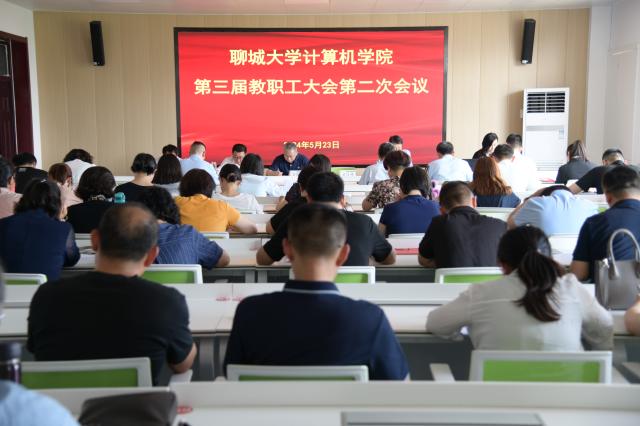 待各小组的讨论结束,主席团召开第二次全体会议,宣读并表决通过了学院工作报告的决议。伴随着贾仰理的致辞,会议议程步入尾声。他强调:“我们始终坚守为党育人、为国育才的初心,紧紧围绕建设高水平应用型大学的宏伟目标,全力以赴地聚焦《聊城大学2024年工作要点》中的各项任务。我们要坚定信念,团结一心,共同朝着突破的目标进发,紧抓机遇,乘风破浪,开启计算机学院高质量发展的崭新篇章,以实际行动向学校50周年华诞献上最诚挚的祝福!”最后,大会在校歌的激昂旋律中,圆满落幕。
