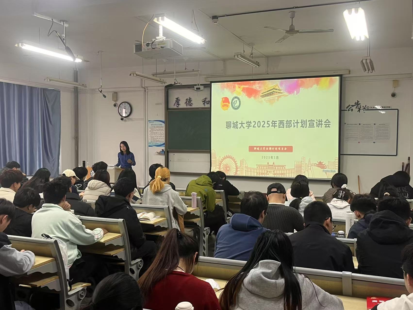 宣讲会伊始,邹晓凤详细介绍了西部计划的基本情况。该计划自2003年起,以公开招募、自愿报名、组织选拔、集中派遣的方式,每年招募普通高等学校应届毕业生或在读研究生,到西部基层开展1 - 3年的志愿服务,并鼓励期满后扎根当地就业创业。对于毕业生党员,西部计划不仅是奉献社会的契机,更是践行入党誓言的舞台。他们可以投身乡村教育、乡村建设等专项,为西部发展注入活力。此外,邹晓凤深入阐释了志愿者精神及志愿服务原则。她表明志愿者需具备自愿性、非报酬性、公益性三大特性,同时志愿服务需遵循量力而行、持之以恒、自愿参加、讲求实效的原则。同学们积极就报名条件、服务内容、政策支持等问题的疑问和见解,现场洋溢着浓厚的探讨氛围,展现出大家对投身西部建设的热情与期待。最后,邹晓凤呼吁学生加入西部计划,在基层磨炼意志,以实际行动彰显党员先锋模范作用,让青春在西部绽放绚丽之花。