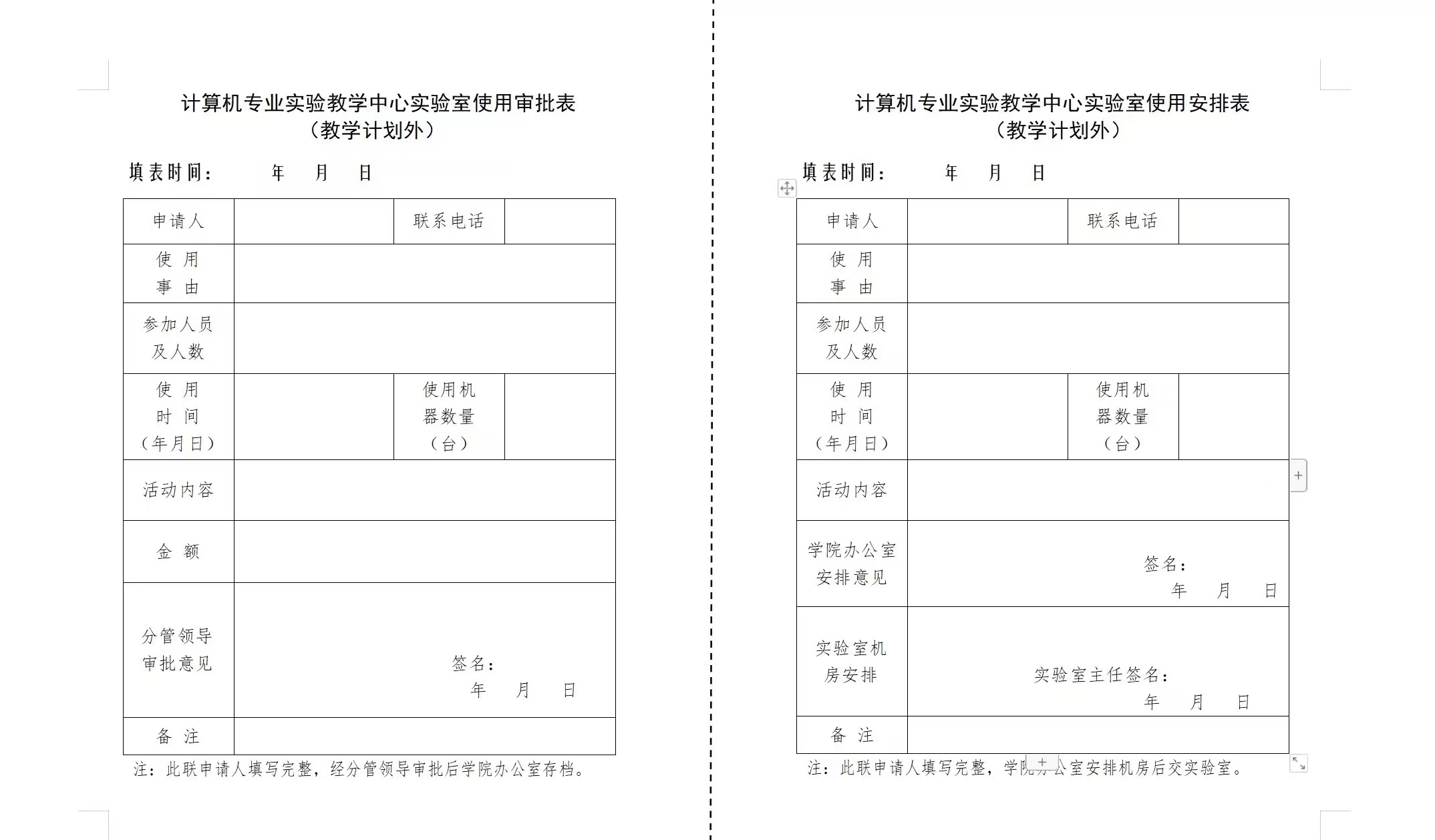 计算机专业实验教学中心实验室使用申请表(下载链接见最下方)