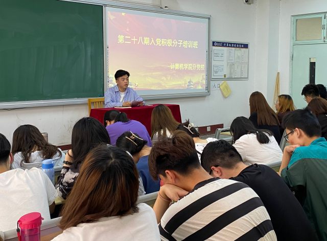 党课教育对入党同志个人树立世界观、人生观、价值观具有重要意义,为提高入党积极分子的自身素质,增强其党性修养,端正入党动机,为早日加入党组织打好思想和理论基础,5月30日,计算机学院在10#120举办第28期入党积极分子培训。计算机学院团委委员王其鲁为大家讲授党课。