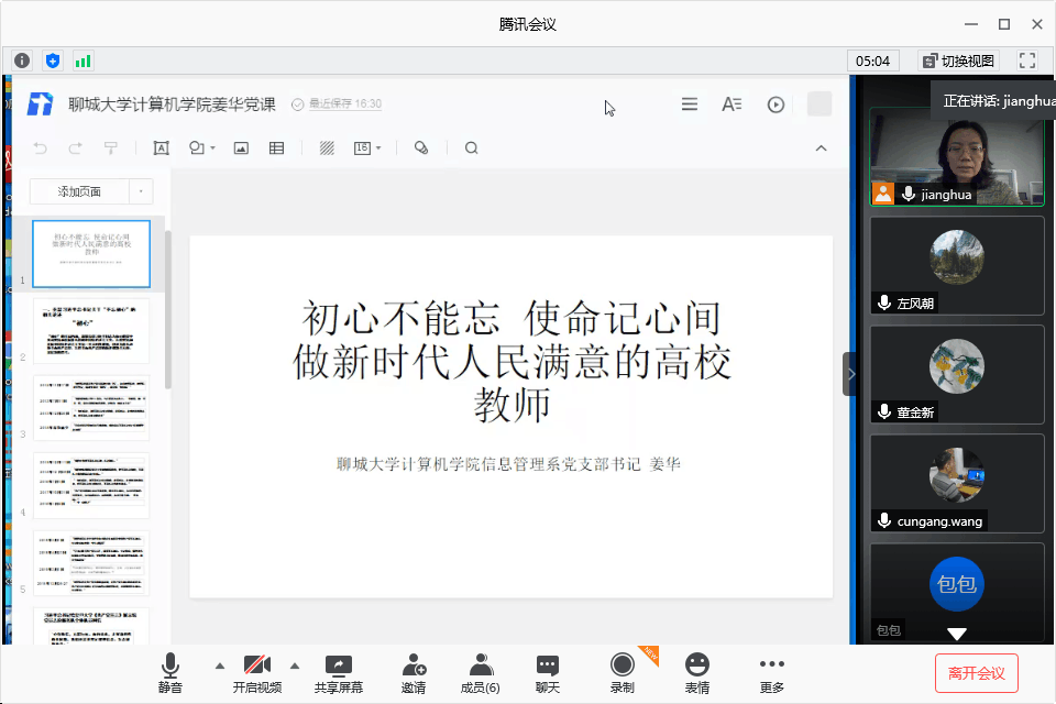 在庆祝中国共产党成立99周年之际,7月6日,计算机学院信息管理系党支部书记姜华在线作了题为“初心不能忘 使命记心间--做新时代人民满意的高校教师”的专题党课。信息管理系全体党员线上进行了学习。