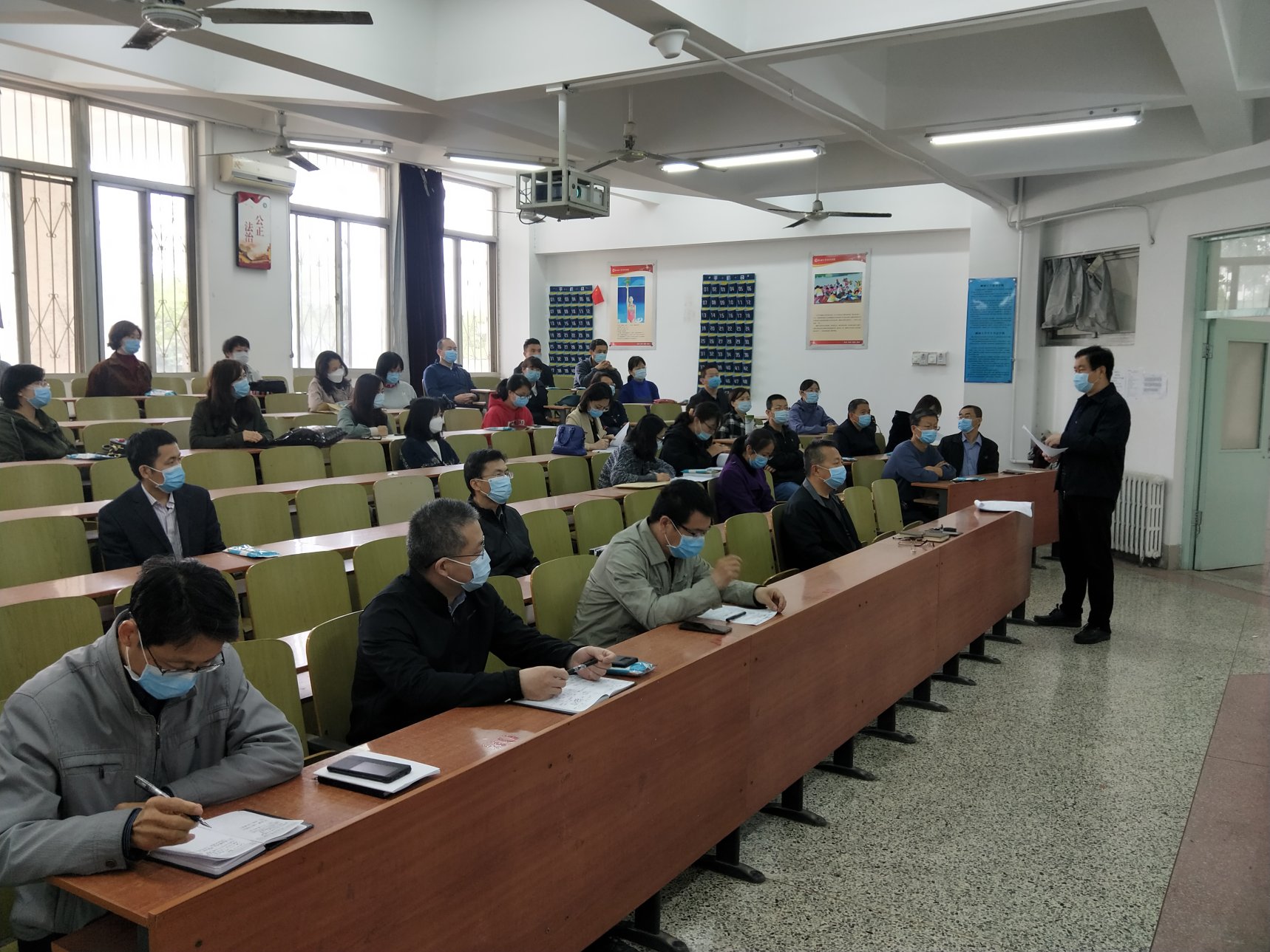 会议期间,院长孟晗传达了聊城大学春季开学工作会议的相关会议精神,就开学前的疫情防控工作对全院教职工进行了积极动员,并针对全员培训、疫情防控演练、学院校舍总体消杀等工作做了具体安排。学院党总支书记康殿峰对全院开学疫情防控筹备工作做了总体部署,并带领大家学习了《聊城大学新冠肺炎疫情防控工作手册》。