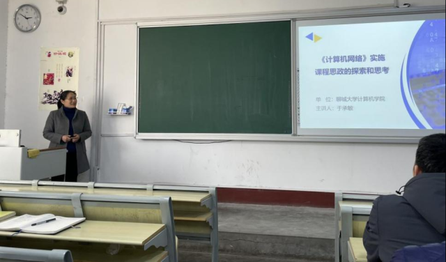 为贯彻落实全国思想政治工作会议精神,推动课程思政工作持续开展,2022年2月24日下午,计算机学院在10号教学楼C120举办课程思政实施经验分享报告会。于承敏老师作题为“《计算机网络》实施课程思政的探索与思考”的报告,全体教职工参加会议。