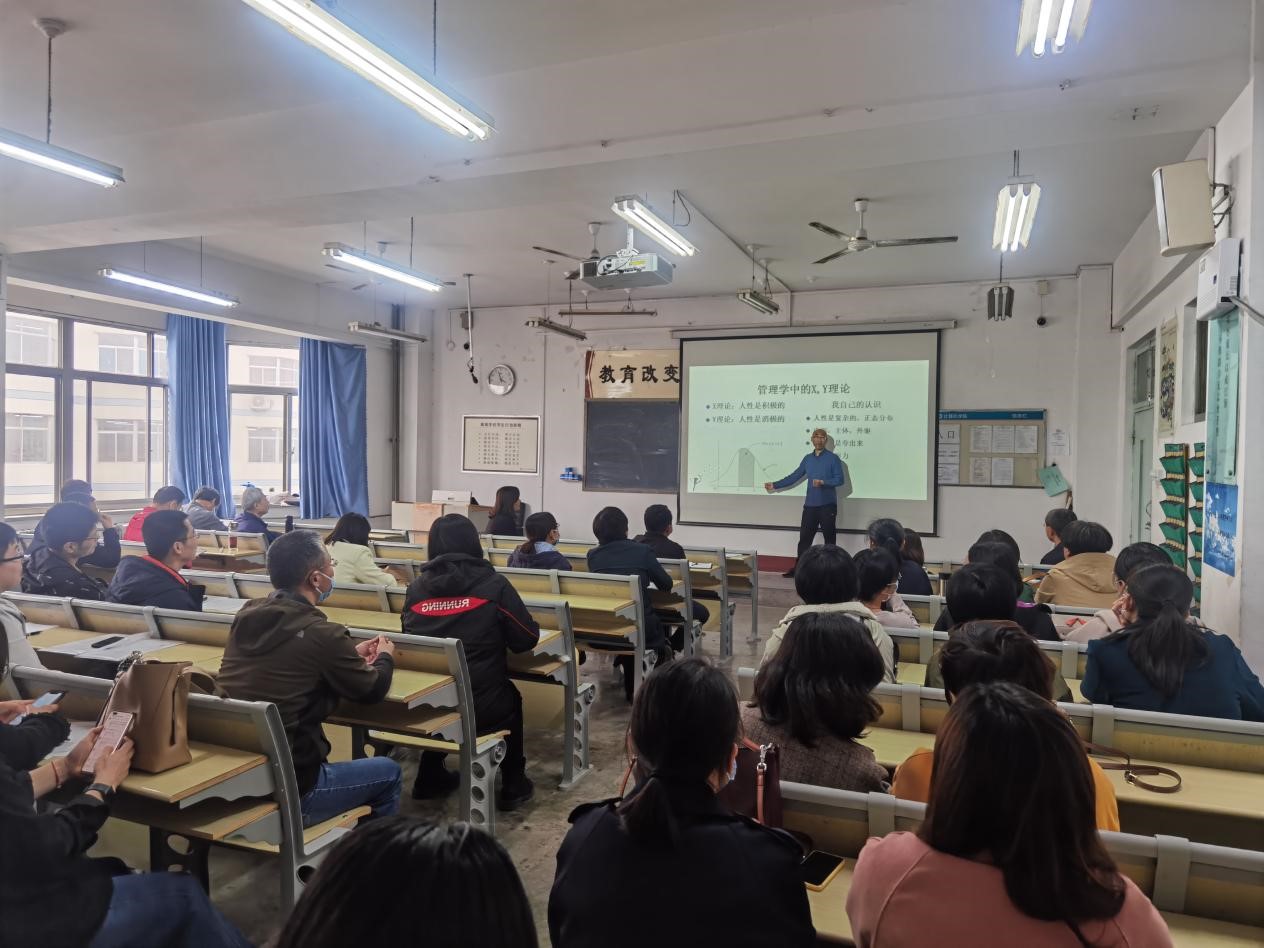 孟之天结合自身从教经历和教学实际,围绕高教产业的属性、学生思想特点、教师课堂教学三个方面进行了颇为生动地分享。他提到,高校教师要扮演好服务者和监督者的角色,就必须从学生思想特点和实际需要出发,换位思考,以包容的心态理解学生的局限性,通过制造学习需求,帮助学生掌握学习的方法和技巧,以实现就业或考研的目标需求。同时他运用管理学中的XY理论,生动形象地展示了如何通过制度设计,运用激励机制不断激发学生主动学习的内驱力。孟之天提出,要把握住课堂教学的机会,通过营造互动学习氛围、鼓励学生组团学习、用简单方法解答困难问题等几个实例小技巧,为老师们进一步改进课堂教学,明确自身授课风格特色提供了思考。